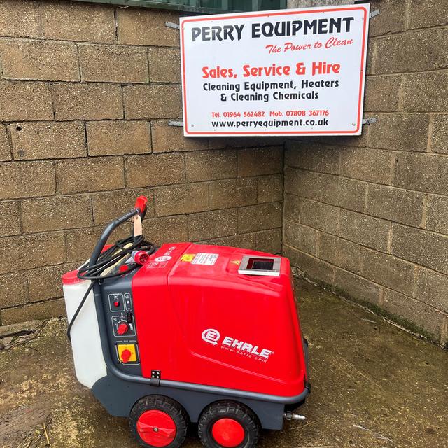 EHRLE Etronic II hot water pressure washer c/w 10mtr HP hose, trigger and lance. 3 phase 15LPM 200BAR